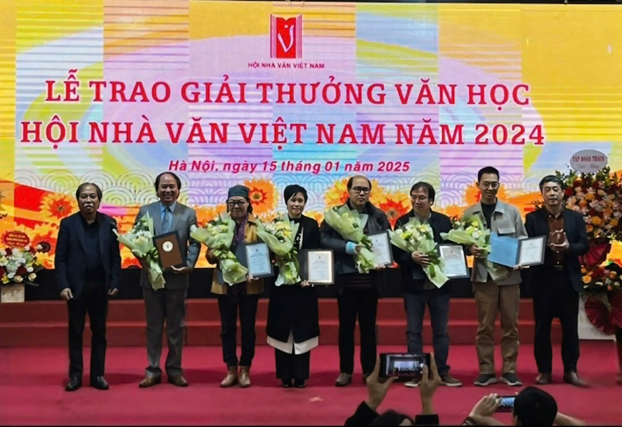 Nhà thơ Đào Quốc Minh (thứ tư từ phải sang) nhận Giải thưởng Hội Nhà văn Việt Nam năm 2024